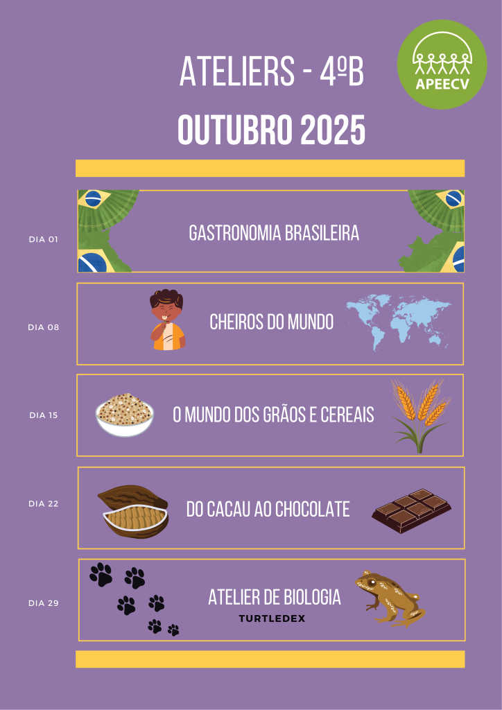 30Set Ateliers 4ºB: outubro 2025 Etiquetas: plano mensal clubes ateliers AEC Categories: Plano de Atividades Facebook0 Twitter0 Google+0 Facebook0 Twitter0 Google+0