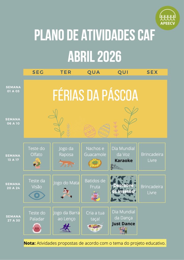 27Mar Plano de atividades CAF: Abril 2026 Categories: Uncategorized Facebook0 Twitter0 Google+0 Facebook0 Twitter0 Google+0 Deixe um comentário Cancelar resposta Guardar o meu nome, email e site neste navegador para a próxima vez que eu comentar.