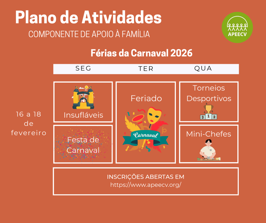 01Fev Plano de Atividades – Férias de Carnaval CAF 2026 Etiquetas: carnaval, férias Categories: Férias Facebook0 Twitter0 Google+0 Facebook0 Twitter0 Google+0